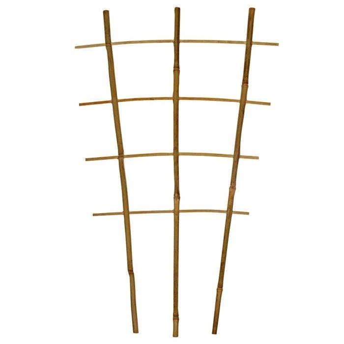 Smart growers know that bamboo is strong, lightweight, inexpensive, versatile and lasts. The outside uprights on this versatile ladder-style trellis can slide to create a “fanned” look. Terrific for supporting container plants. Sold in bundles of 50 fans.