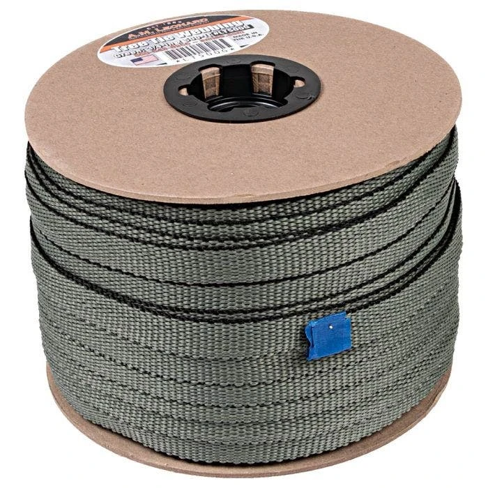 Leonard Tree Tie Webbing features a strong, woven construction. Unlike other webbing ties, Leonard-brand ties will not unravel. This spool contains 500 feet of 3/4-inch wide webbing.