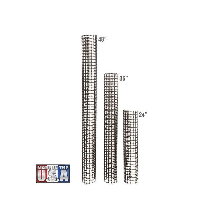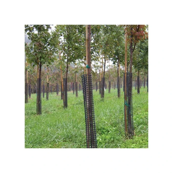 Leonard Rigid Plastic Mesh Tree Guards feature a durable high-density polyethylene construction. These guards fit trees up to 4 inches in diameter. Choose your desired length below. Leonard Tree Guards protect your trees from damage caused by both wildlife and equipment. The flexible UV-treated plastic guards install easily and blend into the environment. They prevent deer, squirrels, rabbits, and woodchucks from rubbing or chewing on your trees. The durable plastic material resists damage from mowers and string trimmers. The open design of Leonard Tree Guards provides several benefits. This design allows your trees to breathe and eliminates moisture buildup around the trunk, preventing the growth of mold and mildew. It also discourages insect activity under the guard. Sold in bundles of 5 Need a larger diameter tree guard? Check out our selection of 6-inch diameter guards!