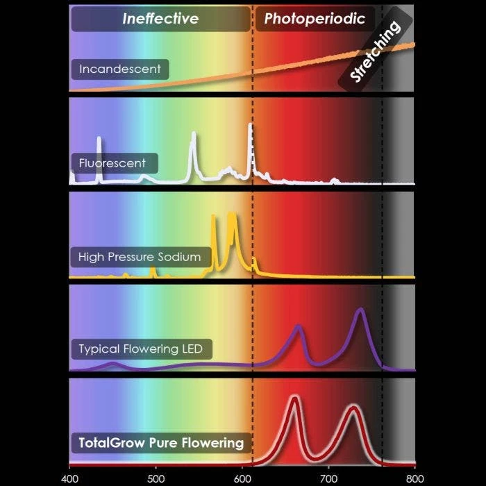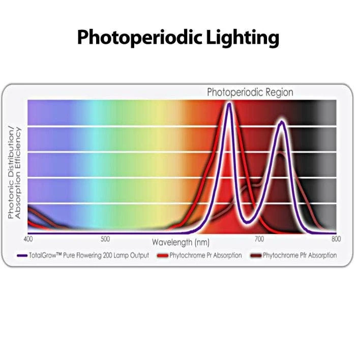 When plants perceive a long or short day cycle, they change vital behaviors. This behavior change is especially true when it comes to flowering versus vegetative growth. Using the TotalGrow Pure Flowering 200 Lamp provides your plants with an ideal day and night cycle for flowering growth.