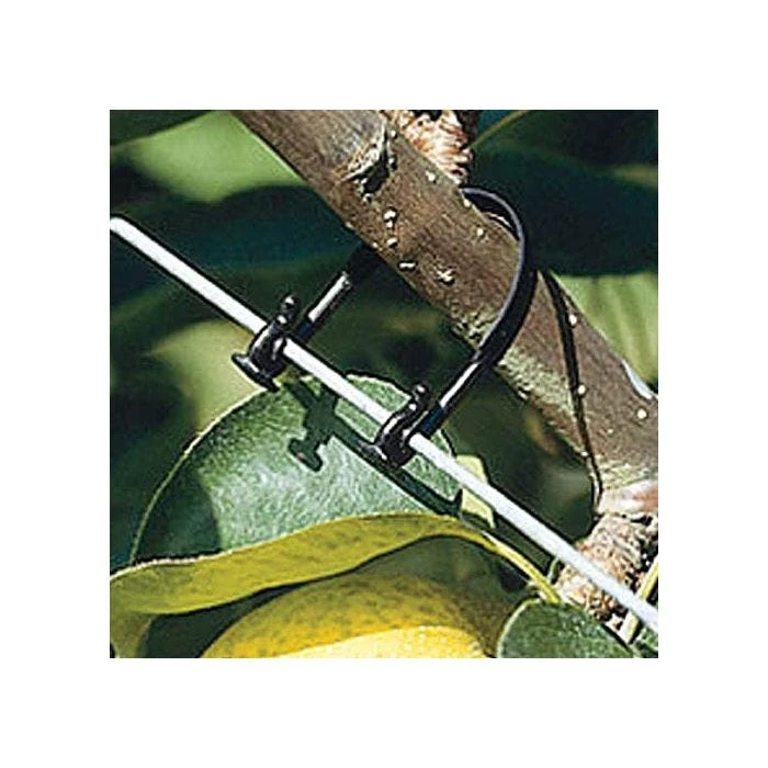 Specialised strong yet economical trellis tie. Ideal for training and holding fruit tree crops such as nashi, persimmon, apple and cherry grown on trellis systems. Suited to other crops such as raspberry and similar robust cane varieties. Ideal for holding irrigation hoses to a wire. Made from long lasting UV stabilised polypropylene. 100mm long with a flat 5mm x 1mm band. Suitable for 2.5mm support wire. Bags of 1000 x 10 per carton.