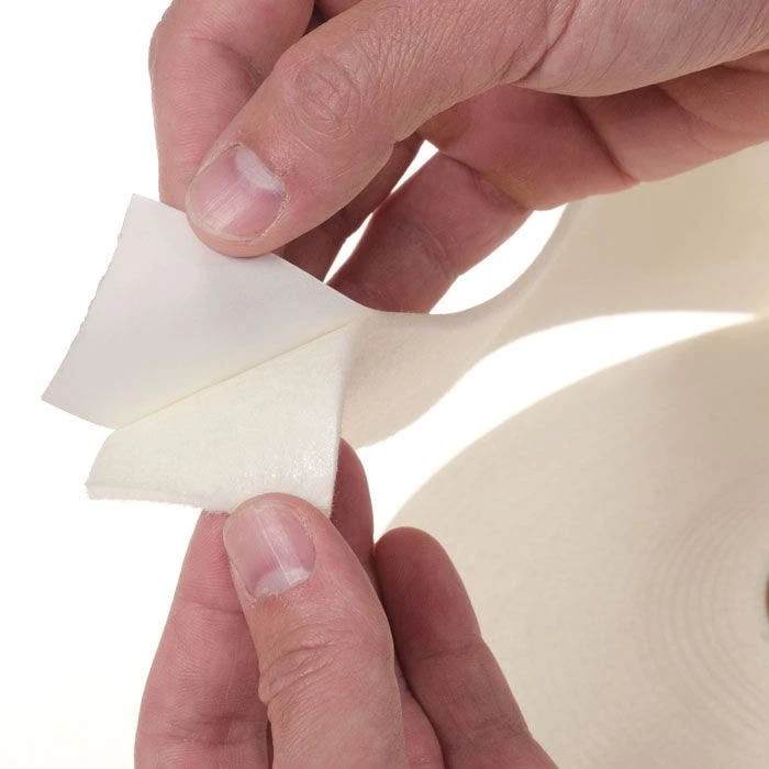 The White Felt Tape comes with an aggressive acrylic adhesive that can adhere to steel, aluminum, and wood frame work. It also holds up well to moisture, temperature, and UV light.